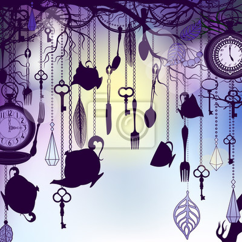 Арт-обои - Фиолетовая абстракция с часами. Артикул 10005266.