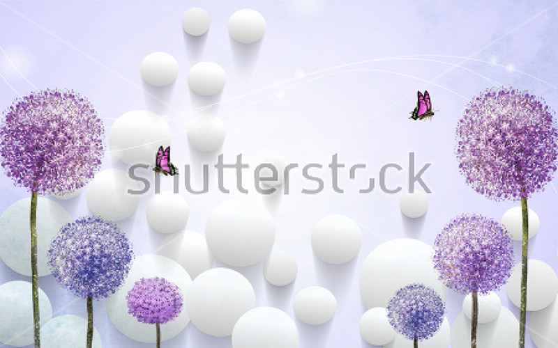 Обои на стену с одуванчиками и шарами артикул 10021699