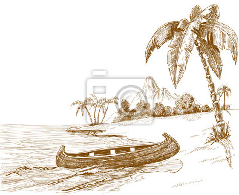 Арт-обои на стену - Лодка и пальма. Артикул 10003153.