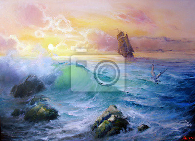 Арт-обои - Морской пейзаж с парусником артикул 10005173