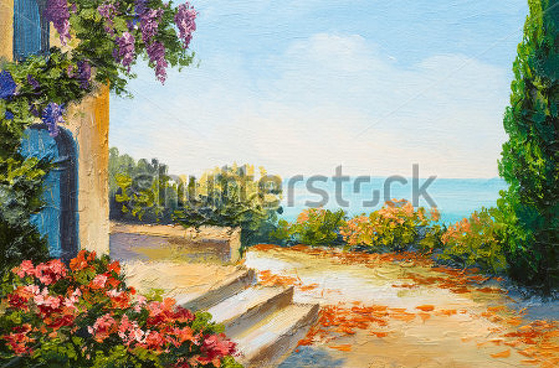Фотообои - дом возле моря (картина маслом). Артикул 10008334.