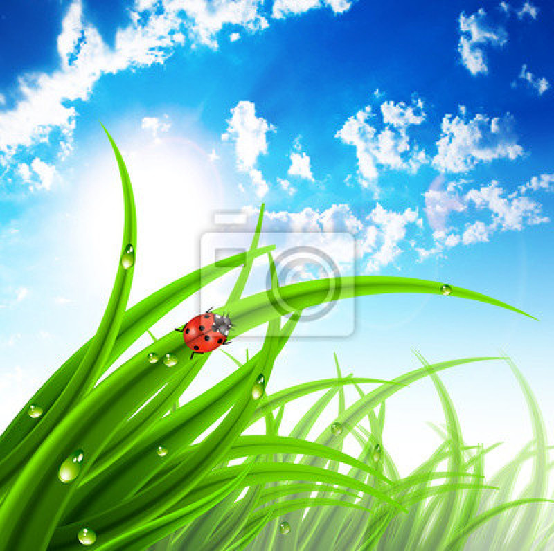 Арт-обои с божье коровкой на траве. Артикул 10005637.