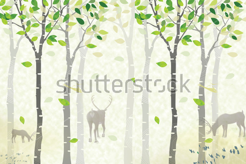 ЗД Фотообои с рисованным лесом. Артикул 10021551.