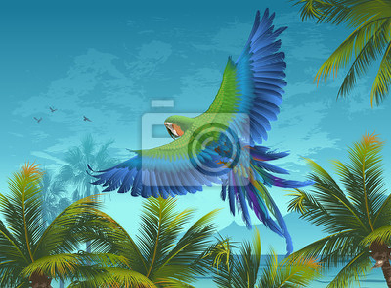 Фотообои "Попугай и пальмы". Артикул 10002376.
