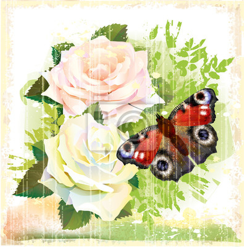 Арт-обои - Бабочка и розы. Артикул 10005080.