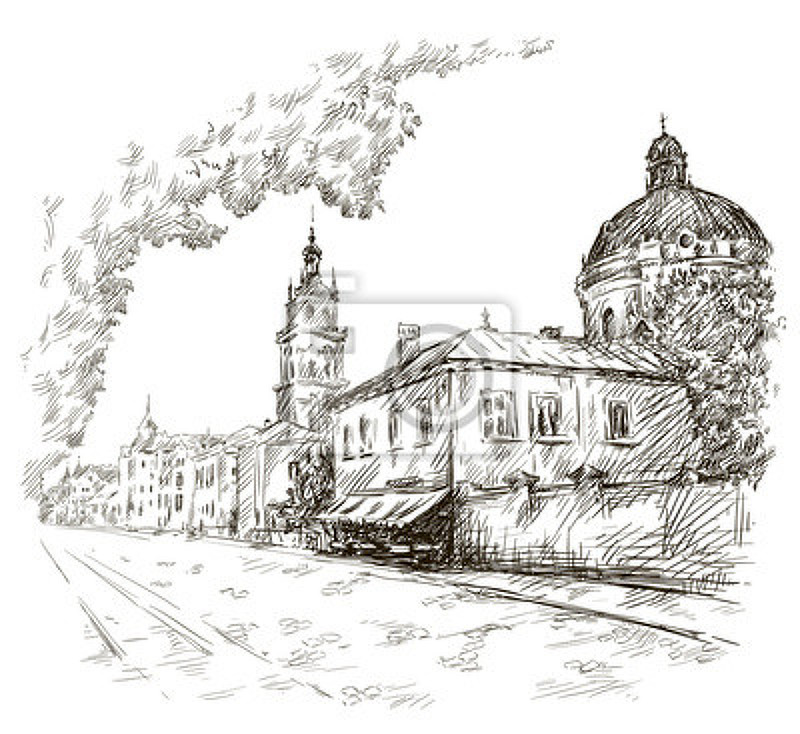 Фотообои - Набросок старого города. Артикул 10007656.