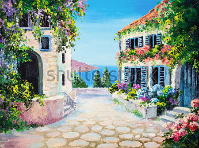 Картина маслом - дом на берегу моря. Артикул 10008464.