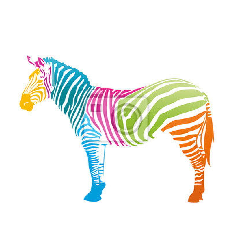 Арт-обои - Разноцветная зебра на белом фоне. Артикул 10003768.