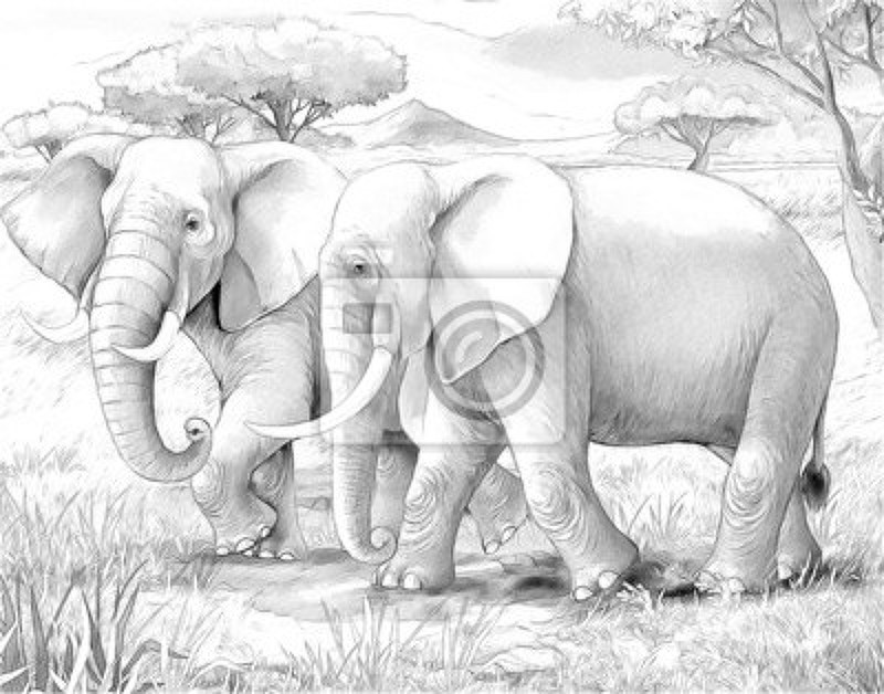 Арт-обои - Рисованная семья слонов артикул 10004681