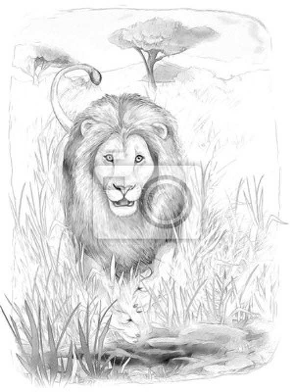 Арт-обои - Рисованный лев. Артикул 10004685.