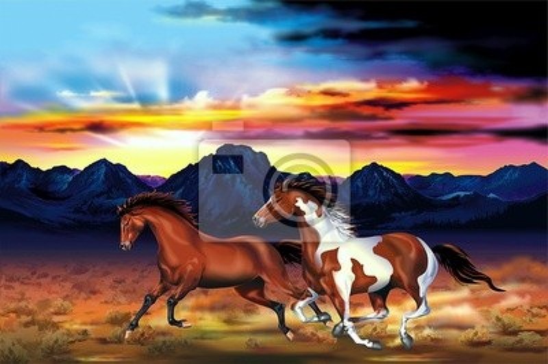 Арт-обои - Нарисованные кони. Артикул 10006636.