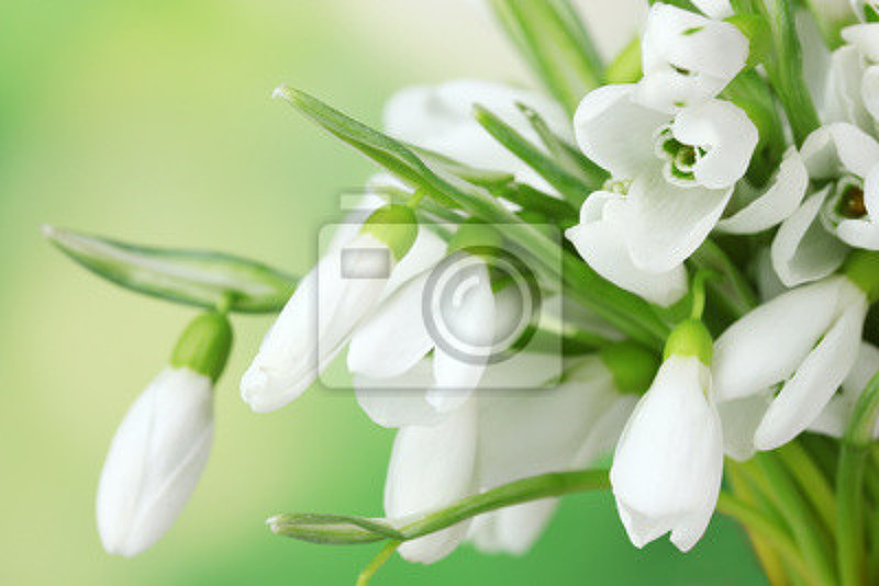 Фотообои с подснежниками на зеленом фоне. Артикул 10002095.