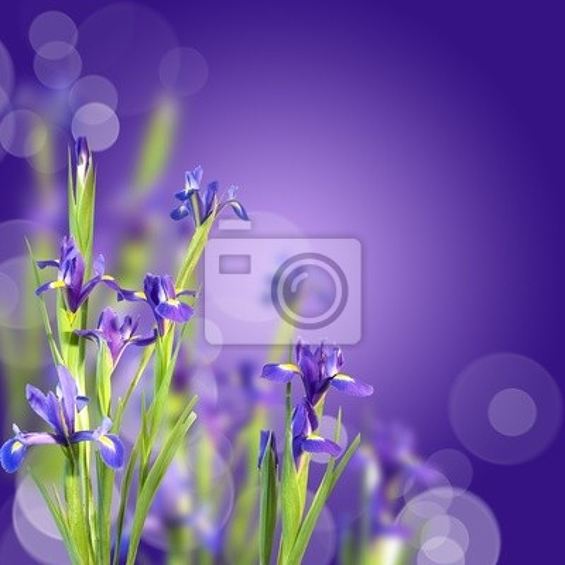 Фотообои на стену - Ирисы на фиолетовом фоне. Артикул 10000456.