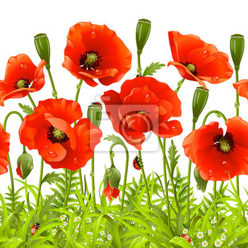 Арт обои - Иллюстрация с красными маками артикул 10000108