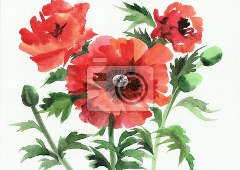 Фотообои на стену - Маки акварелью. Артикул 10005429.