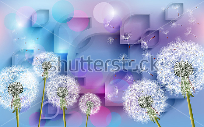 3Д Фотообои с одуванчиками на синем фоне артикул 10021497