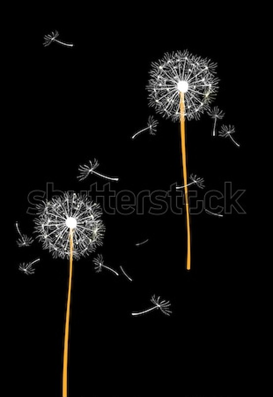 Обои с воздушными одуванчиками на черном фоне. Артикул 10045800.