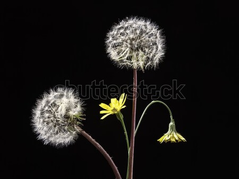 Обои на стену с одуванчиками на черном фоне артикул 10045805