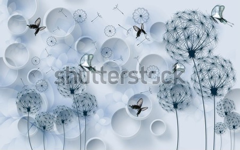 3Д обои с одуванчиками и насекомыми артикул 10060907