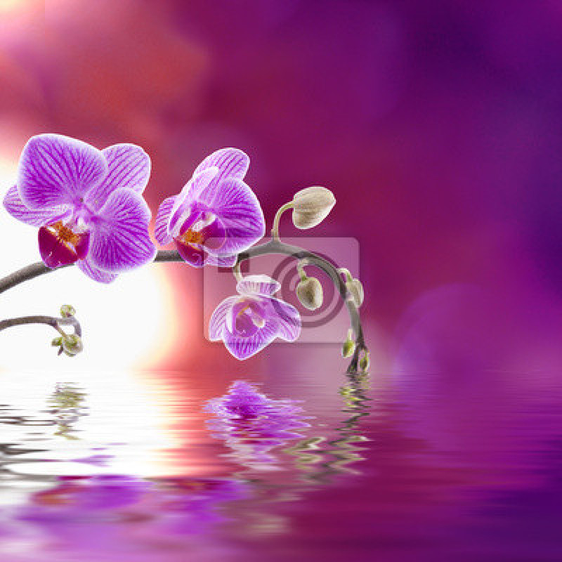 Фотообои с фиолетовой орхидей над водой артикул 10001020