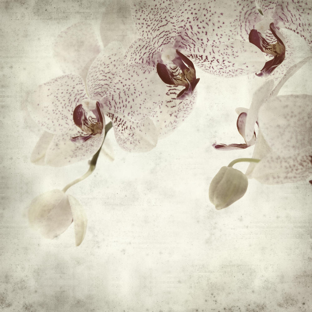 Фотообои - Текстура старой бумаги с белыми орхидеями. Артикул 10003308.