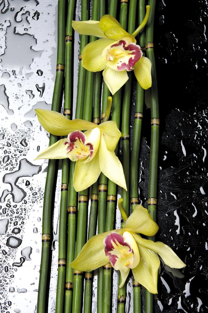 Орхидеи на побегах бамбука — Обои на стену артикул 10004454