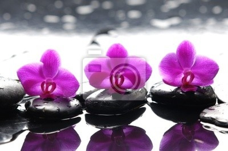 Фотообои - Розовые орхидеи на камнях. Артикул 10006168.