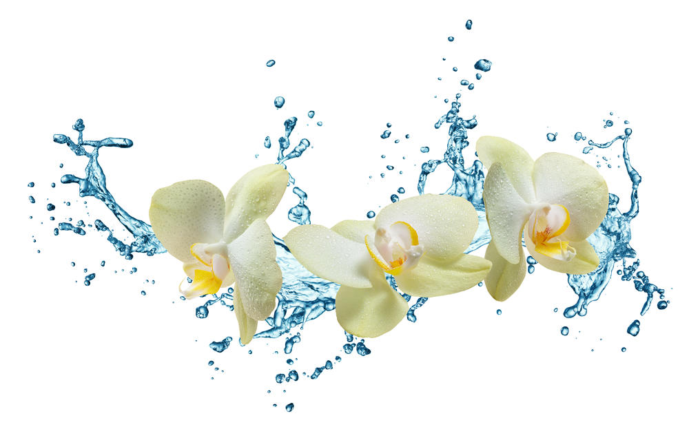 Фотообои - Орхидеи в брызгах воды. Артикул 10007001.