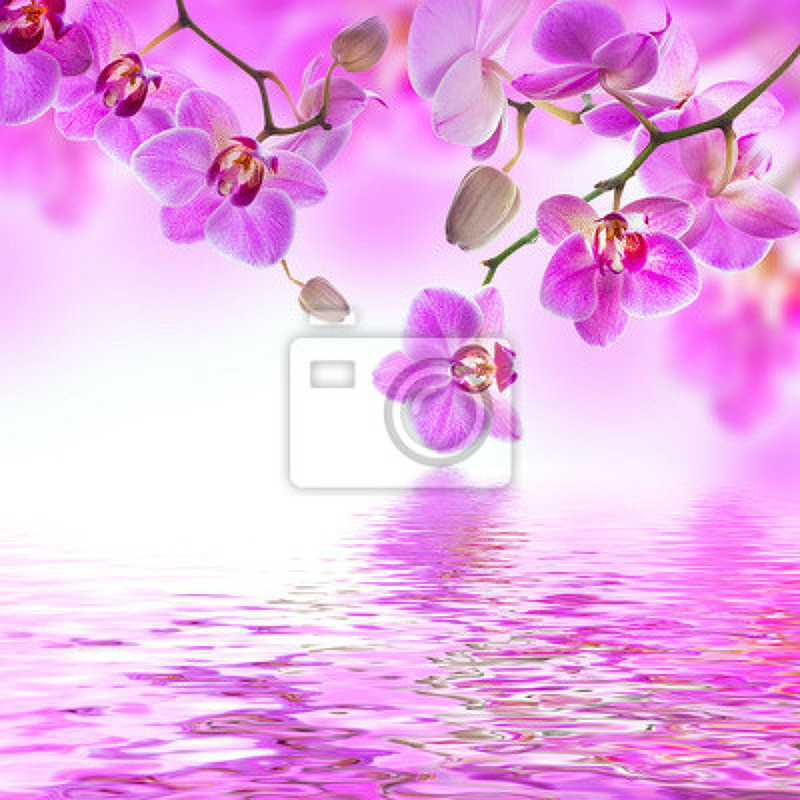 Фотообои с розовыми орхидеями над водой. Артикул 10007007.