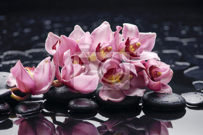 Фотообои - Розовые орхидеи на камнях. Артикул 10008308.