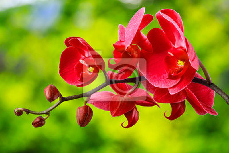 Фотообои с красной орхидеей на размытом фоне артикул 10008313