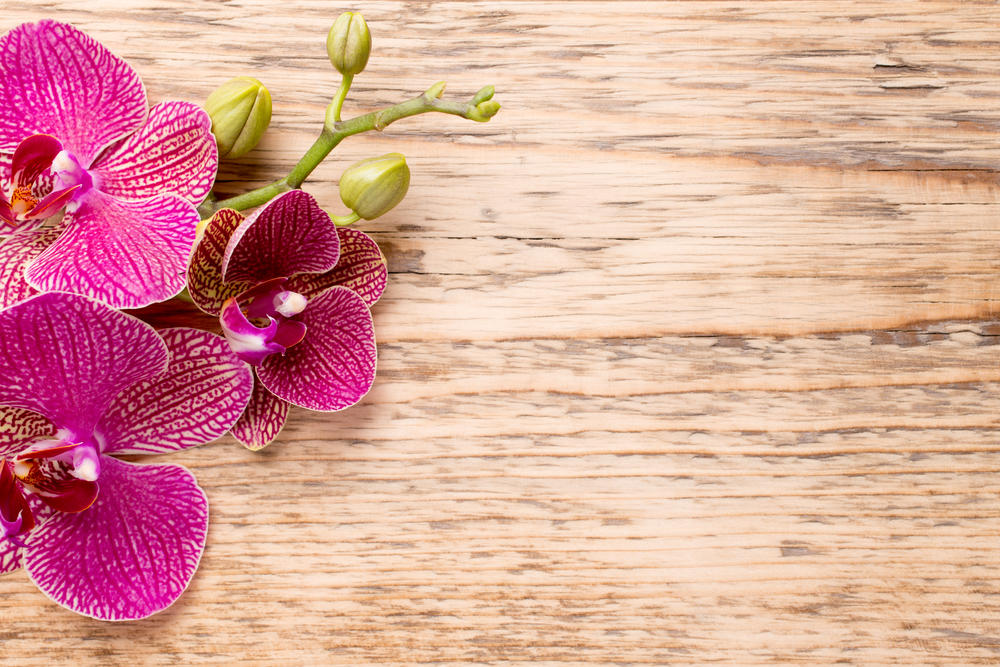 Розовые цветки орхидеи на деревянном фоне. Артикул 10019721.