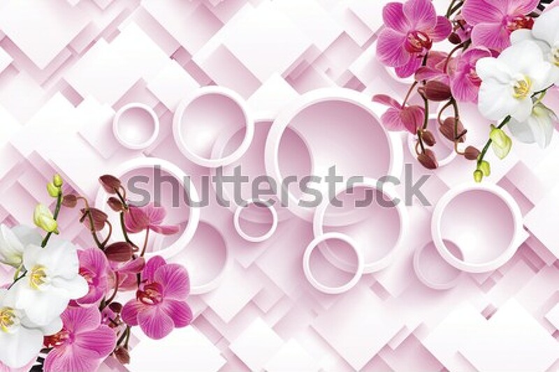 Обои 3д с орхидеями и кругами. Артикул 10061226.