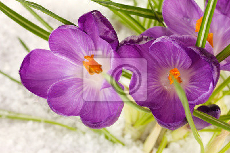 Фотообои с красивыми крокусами на снегу. Артикул 10000964.