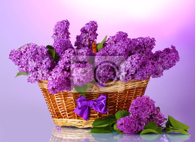 Фотообои на стену - Сирень в корзине артикул 10006857