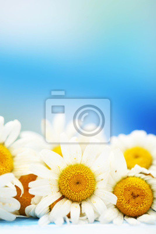 Фотообои - Полевые ромашки на синем фоне. Артикул 10004203.