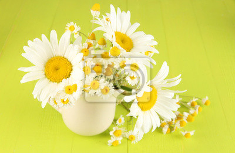 Фотообои - Ромашки в кувшине на столе. Артикул 10004209.