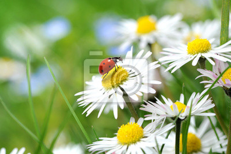 Фотообои - Цветы с божьей коровкой артикул 10004357