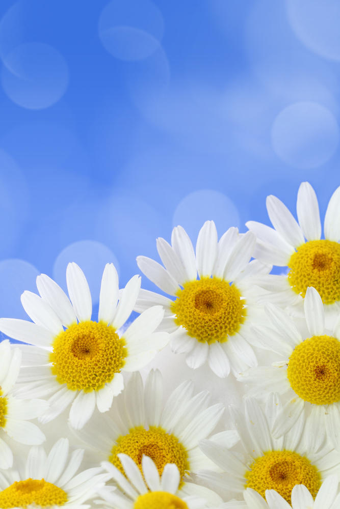Фотообои - Ромашки на синем с бликами. Артикул 10004392.