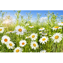 Очень часто, особенно зимой или когда за окном плохая погода, нам не хватает солнышка, тепла. Хочется, чтобы поскорее наступило лето… Оказывается, добавить света и радости в интерьер могут фотообои с ромашками. Только представьте: на улице непогода – а у вас круглый год на стене «цветут» и «пахнут» обои с изображением ромашки или маргаритки. К слову, наше психологическое состояние напрямую зависит от того, что нас окружает. Мы часто подвержены плохому настроению в пасмурные осенние дни, когда на улице грязь и слякоть. Купите фотообои на стену с ромашками и вы сделаете свою гостиную или спальню настолько позитивной, что от грустных мыслей не останется и следа. В зависимости от выбора рисунка изменится и интерьер. Ромашки, подобно «маленькому солнышку» ассоциируются у нас с чем-то нежным, романтичным, юным и по-девичьи беззаботным. А приклеив фотообои на стену с ромашковым полем, можно зрительно расширить границы комнаты и добавить в неё света за счёт белого и жёлтого цветов. Дизайнерские фотообои на стену с ромашками добавят пространству объёма и цвета. Кроме того, этот цветок символизирует чистоту, непорочность и заряжает энергией. Фотообои на заказ с ромашками способны создать уютную атмосферу в доме и поднять настроение его гостям и хозяевам. Глядя на них, у человека невольно создастся ощущение того, что он действительно находится посреди луга с ромашками. А что может быть прекраснее этого единения природы и человека?!