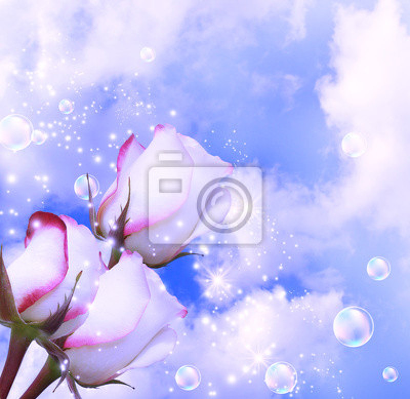 Фотообои с белыми розами на фоне облаков артикул 10000570