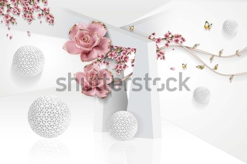 Розовые розы — Белые обои 3Д. Артикул 10061034.