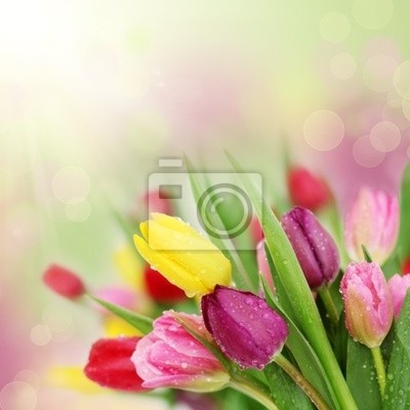 Фотообои - Весенние тюльпаны с каплями росы артикул 10003198