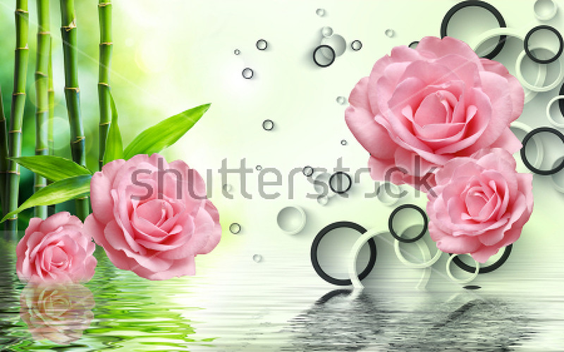 3Д обои бамбук и розы. Артикул 10021793.
