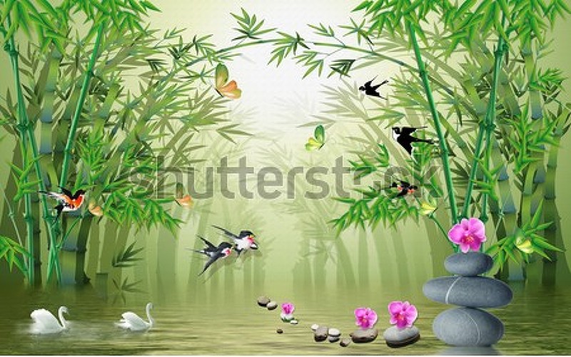 3Д обои на стену с бамбуком. Артикул 10060806.