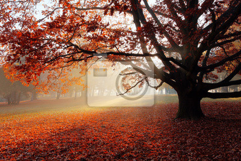 Фотообои с одиноким деревом в осеннем парке. Артикул 10001418.