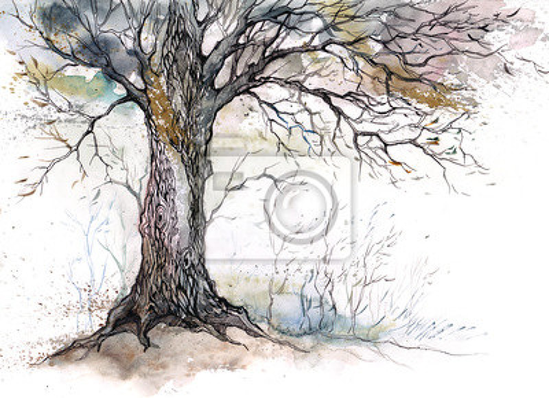 Арт-обои "Акварельное дерево". Артикул 10006620.