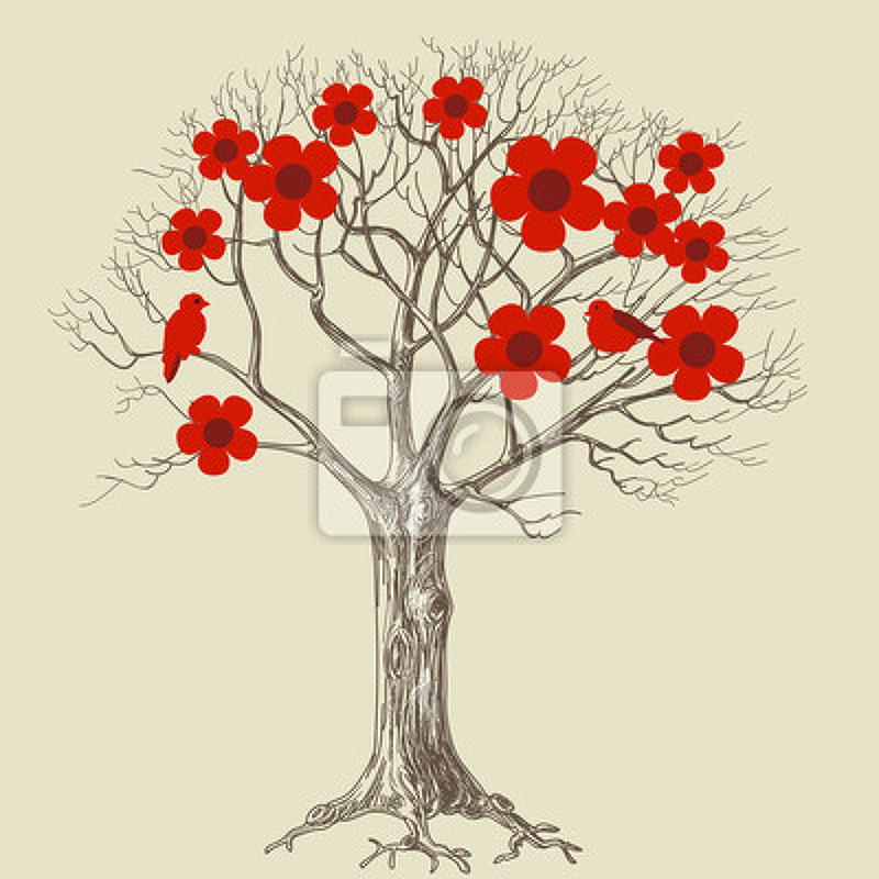 Арт-обои "Дерево с цветами". Артикул 10008047.