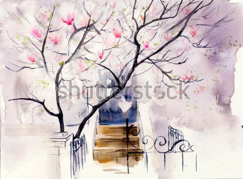 Обои с цветущим деревом (абстракция). Артикул 10018144.