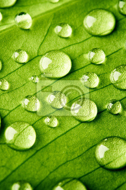 Фотообои - Зеленый лист с каплями. Артикул 10006672.
